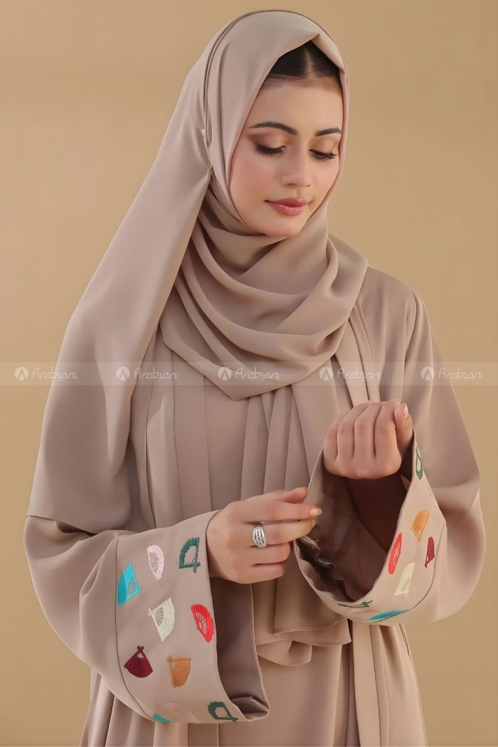 This premium Dubai Cherry fabric abaya is an exceptional combination of style and comfort. Featuring embroidery work, it is perfect for both special occasions and daily wear. Whether you’re attending a formal event or looking for something stylish for regular use, this abaya suits all occasions.