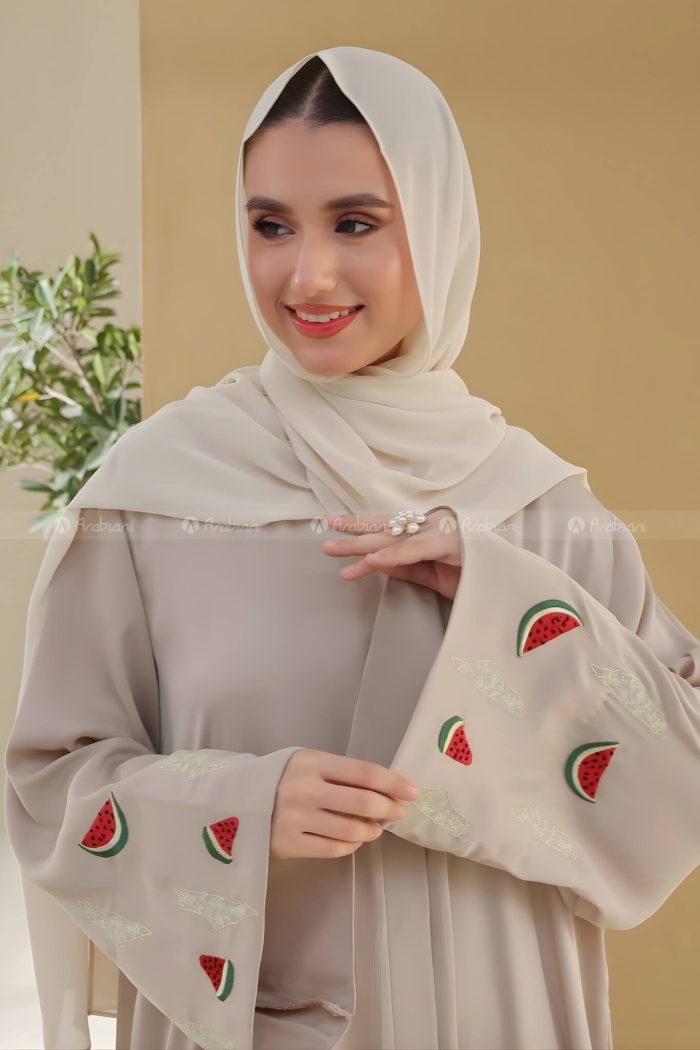 This premium Dubai Cherry fabric abaya is an exceptional combination of style and comfort. Featuring embroidery work, it is perfect for both special occasions and daily wear. Whether you’re attending a formal event or looking for something stylish for regular use, this abaya suits all occasions.